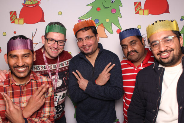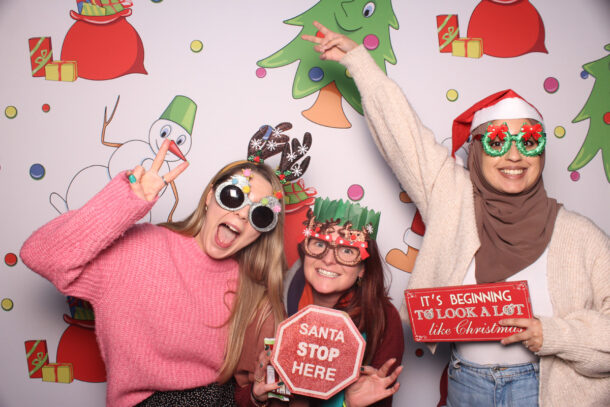 The Lloyd's Bank Christmas party in Glasgow was a festive event filled with joy, laughter, and plenty of holiday cheer. As a supplier of the open photo booth, Event Photo Guy had the pleasure of witnessing the merriment firsthand and providing a unique and entertaining experience for the attendees. The venue was a spacious hall decorated in traditional Christmas colours of red and green with sparkling lights and ornaments adorning the walls and ceiling. The guests arrived dressed in their silliest and funniest festive attire, with some donning Santa hats and reindeer antlers to complete their looks.