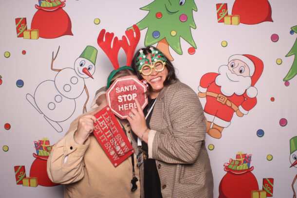 The booth was easy to use, with a large touch screen display that allowed guests to choose their props select from a wide range selection, including Santa hats, elf ears, and oversized sunglasses. As they snapped their photos, they were able to preview them on the screen and choose to print them out or share them directly to their social media accounts.